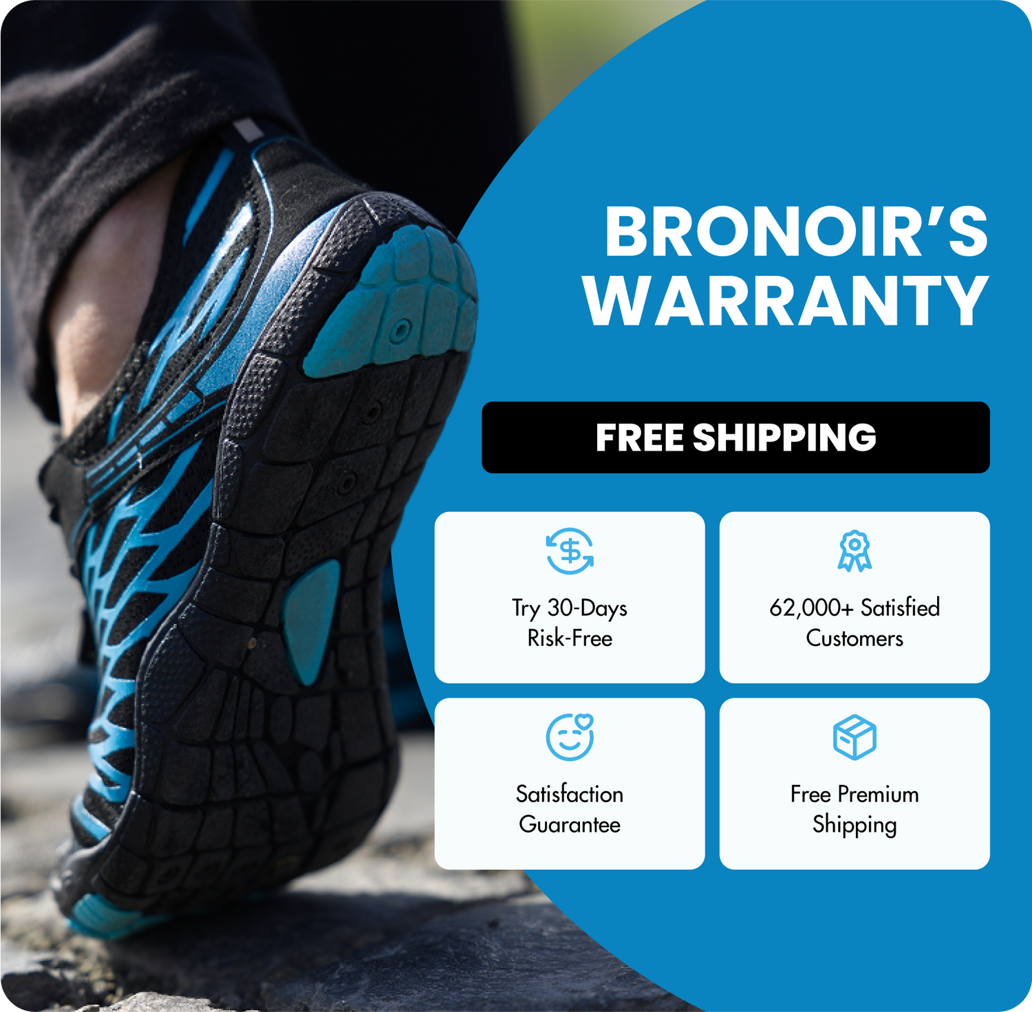 With Bronoir's ultra-thin 4mm soles, every step you take feels like you're walking barefoot. Reignite the joy of being active thanks to the innovative zero-heel technology that strengthens your muscles, prevents your feet from getting sore and effectively reduces pain in the back, knees and feet.